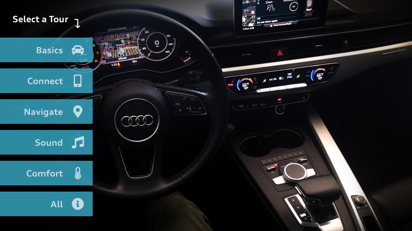Opportunity: Create an augmented information experience for renters, subscribers and potential buyers that allows educational moments providing comfort and confidence when sitting in these vehicles for the first time.
