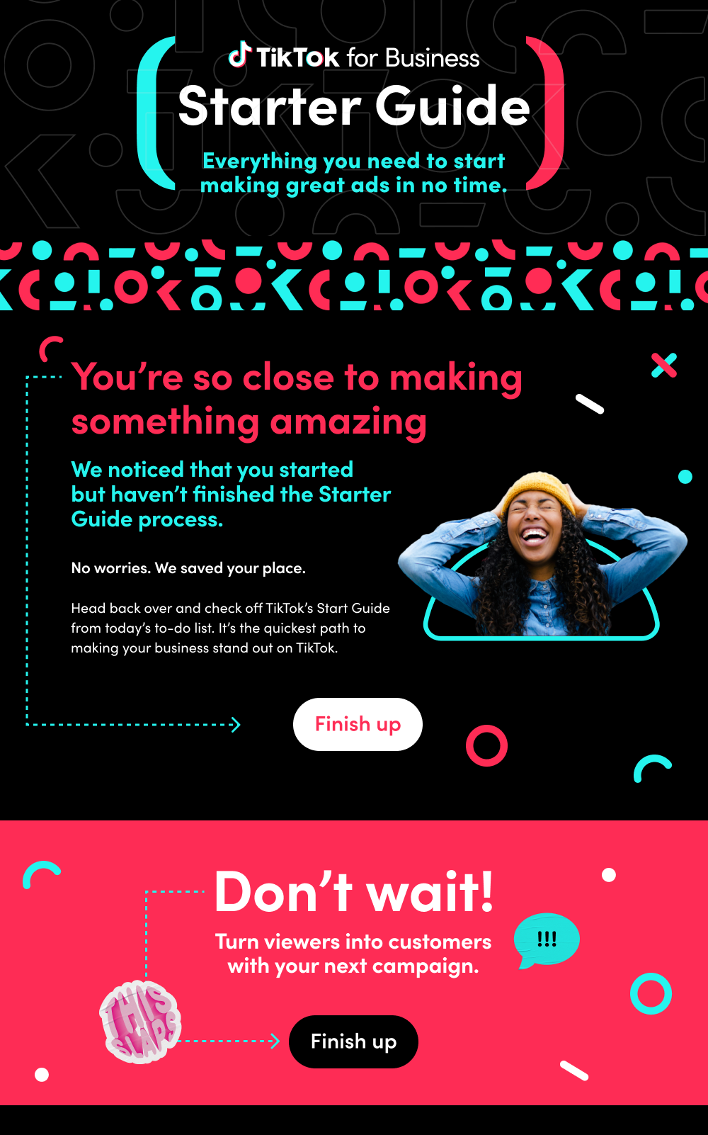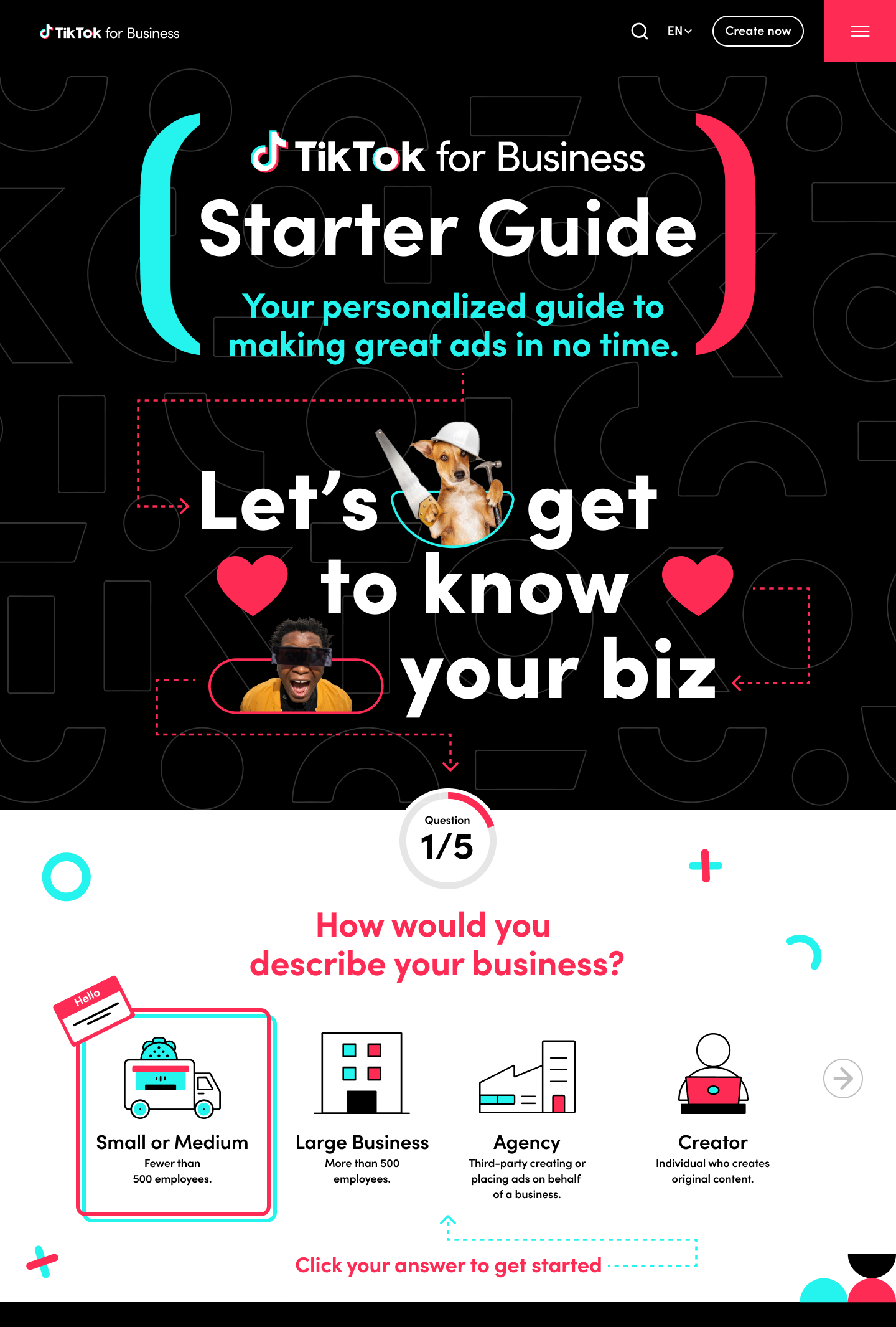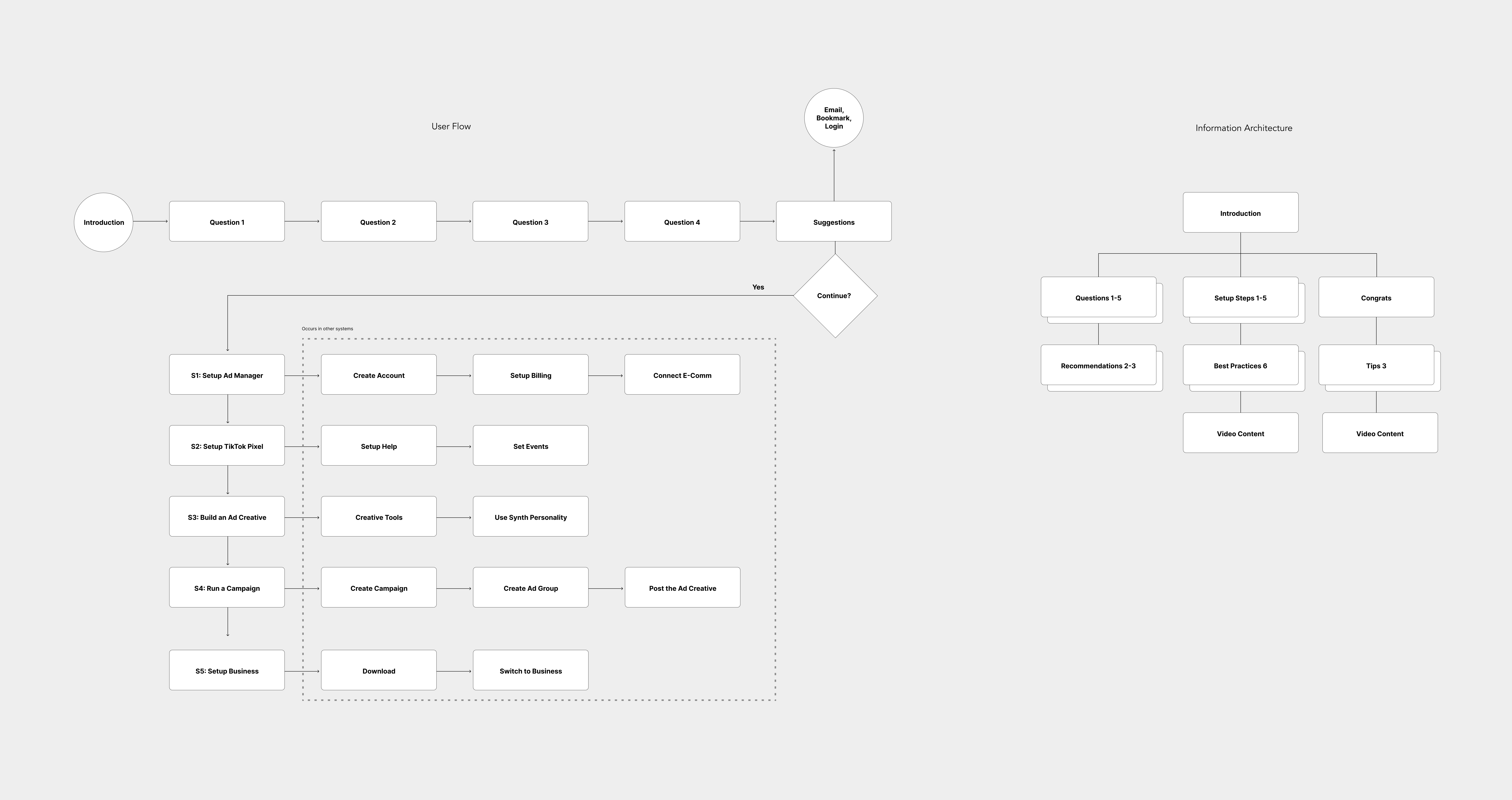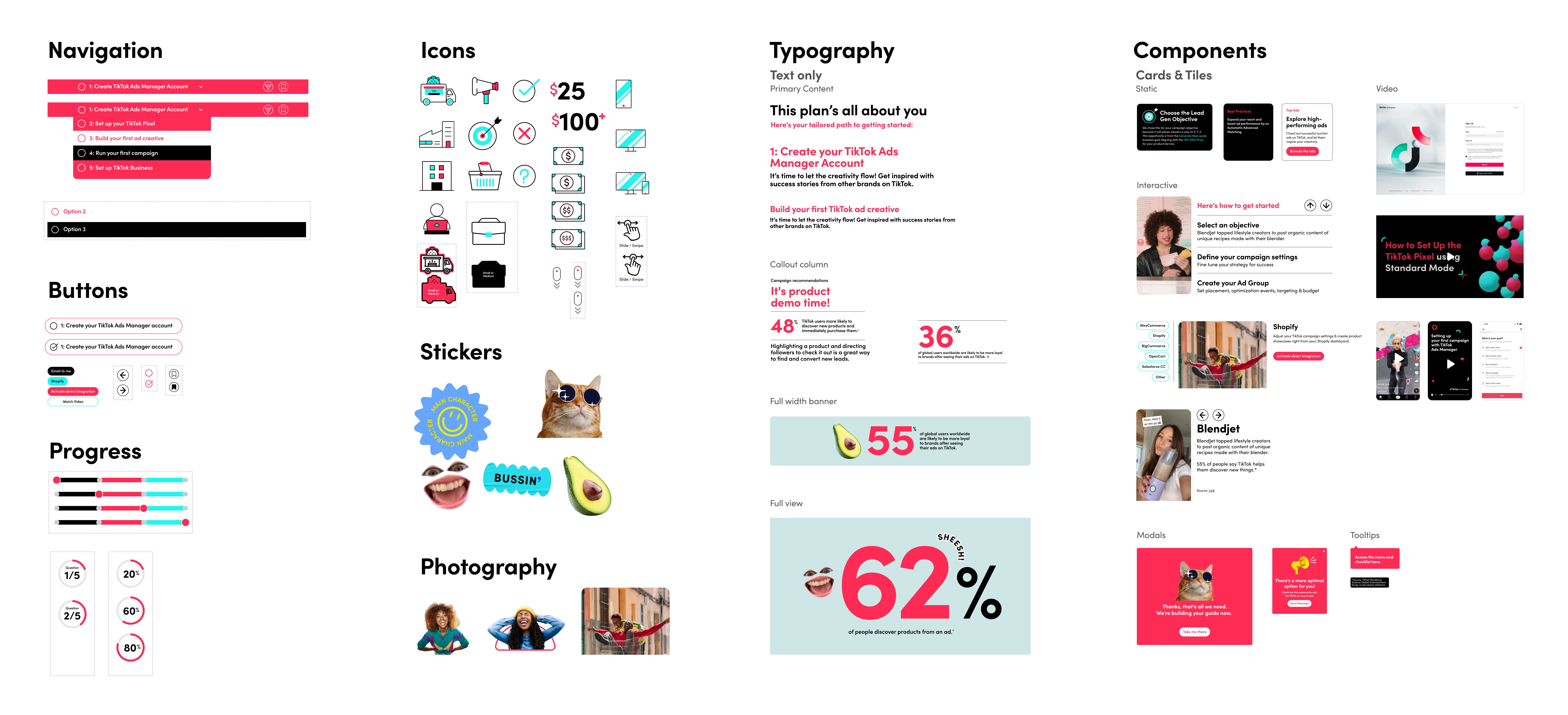 TikTok needed a better way for businesses to successfully set up accounts for the first time. Multiple logins across their infrastructure caused a drop off and we wanted to provide a guide to help them through this journey to start creating content.