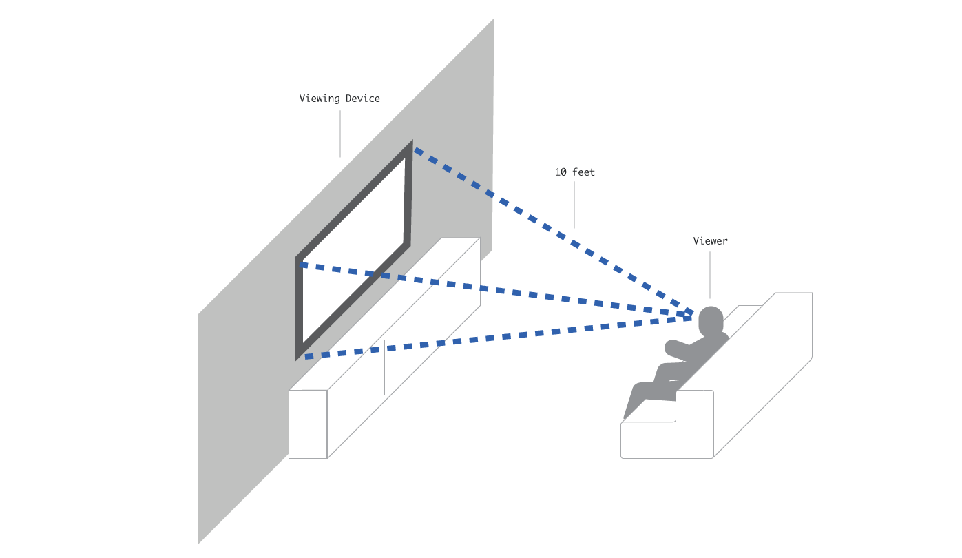 One consideration we identified for TV apps is the average living room configuration would have a user about 10 feet from the screen there were interacting with. This let us know the interface and interactions had to be clean, simple, and very clear. Everything we created for the TV experience filtered through this constraint.